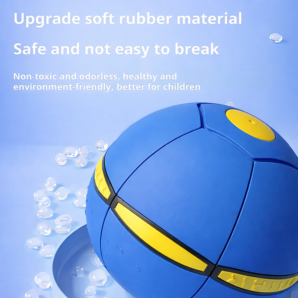 Transforms from a flying saucer into a bouncing ball mid-air, creating surprise, excitement, and endless entertainment for curious kids during every throw and catch.